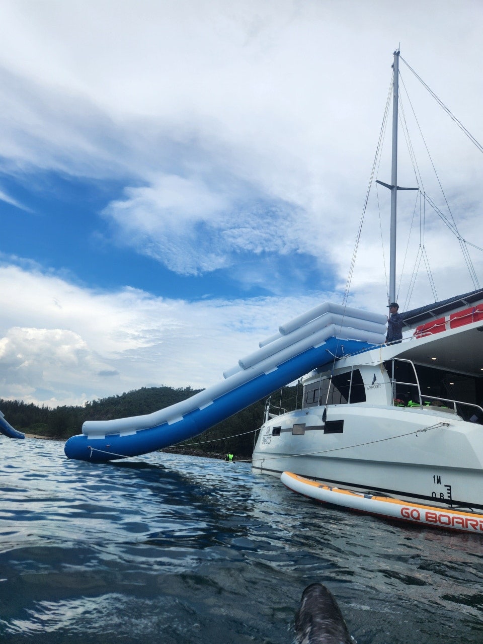 선착장에서 15분에서20분정도 이동후 호핑투어 장소에 도착하면 워터슈즈를 지급하고 물안경을 지급합니다.요트내에도 미니바가있기때문에 충분히 간식거리를 먹을수있고 장소 도착시 주의사항 설명과 동시에 즐기라고 해주는데 요트맨위에 수상미끄럼틀을 설치해서 수영하다가 미끄럼틀도 즐기면되고, 낚시대를 여러개 준비해놓기때문에 수영하다가 힘들거나 수영을 많이 못하는 사람들은 낚시를 즐길수도있습니다. 저는 수영을 엄청많이 즐기다가 이제 더이상 힘들어서 수영할힘이없어서 미끄럼틀한번타고 낚시를 했습니다.낚시하면서 2마리를 잡았는데 돔과 비슷하게 생겨서 엄청 들떠가지고 계속 낚시하고싶어서 미끼끼우고 무한반복했던것같습니다. 그리고 요트내에 서핑보드를 2~3개준비해놓고 요트에 연결해놓아서 보드를 이용할사람들은 그것을 이용하면됩니다. 저의 일행들은 서핑보드를 처음보고 나서 보드를 이용했는데 중심잡기가어려워서 많이 힘들어하면서도 재밌다고 계속 보드를 타고 보드에 매력에 빠졌습니다.이렇게 여러가지가 준비되어있는 투어상품이기때문에 수영만하고 하다가 지쳐서 힘들고 지루한 시간을 보내기보단 여러가지 즐겁게 이용하고 충분한 만족을 느낄수있는 투어라고 생각하며,