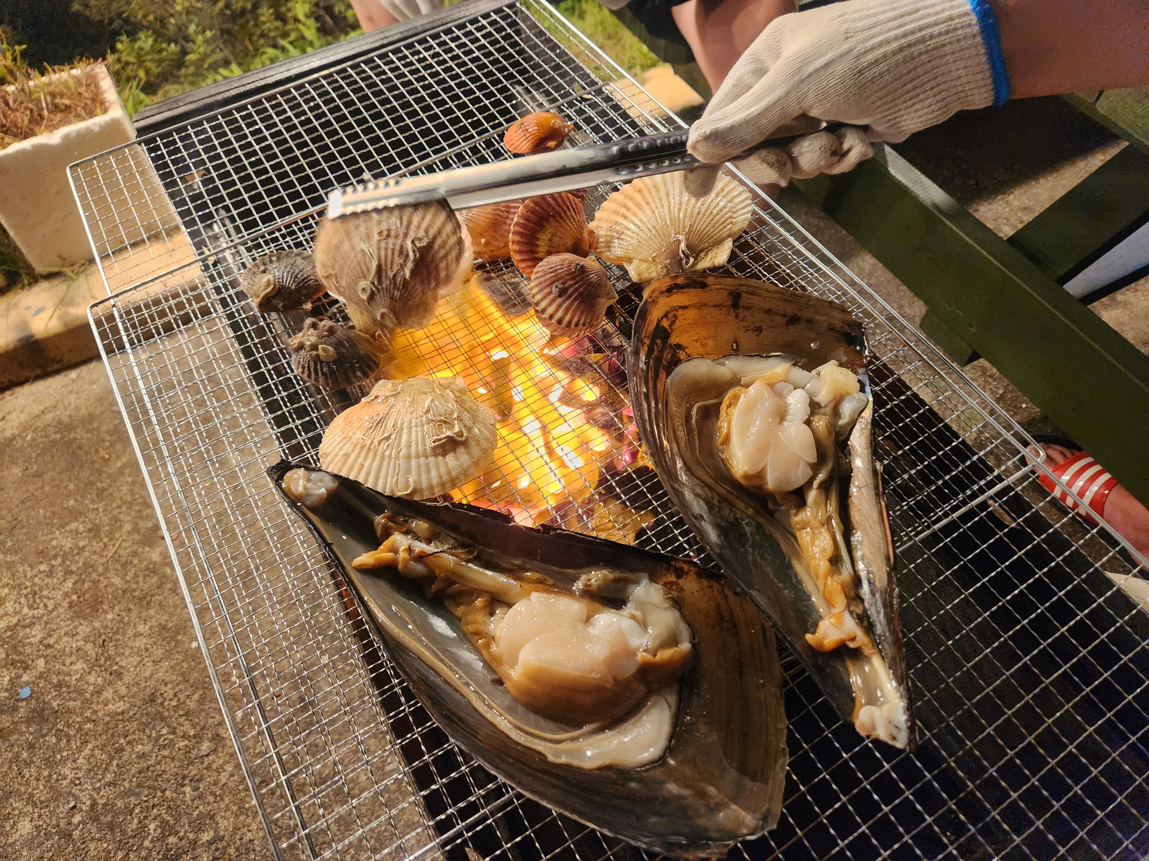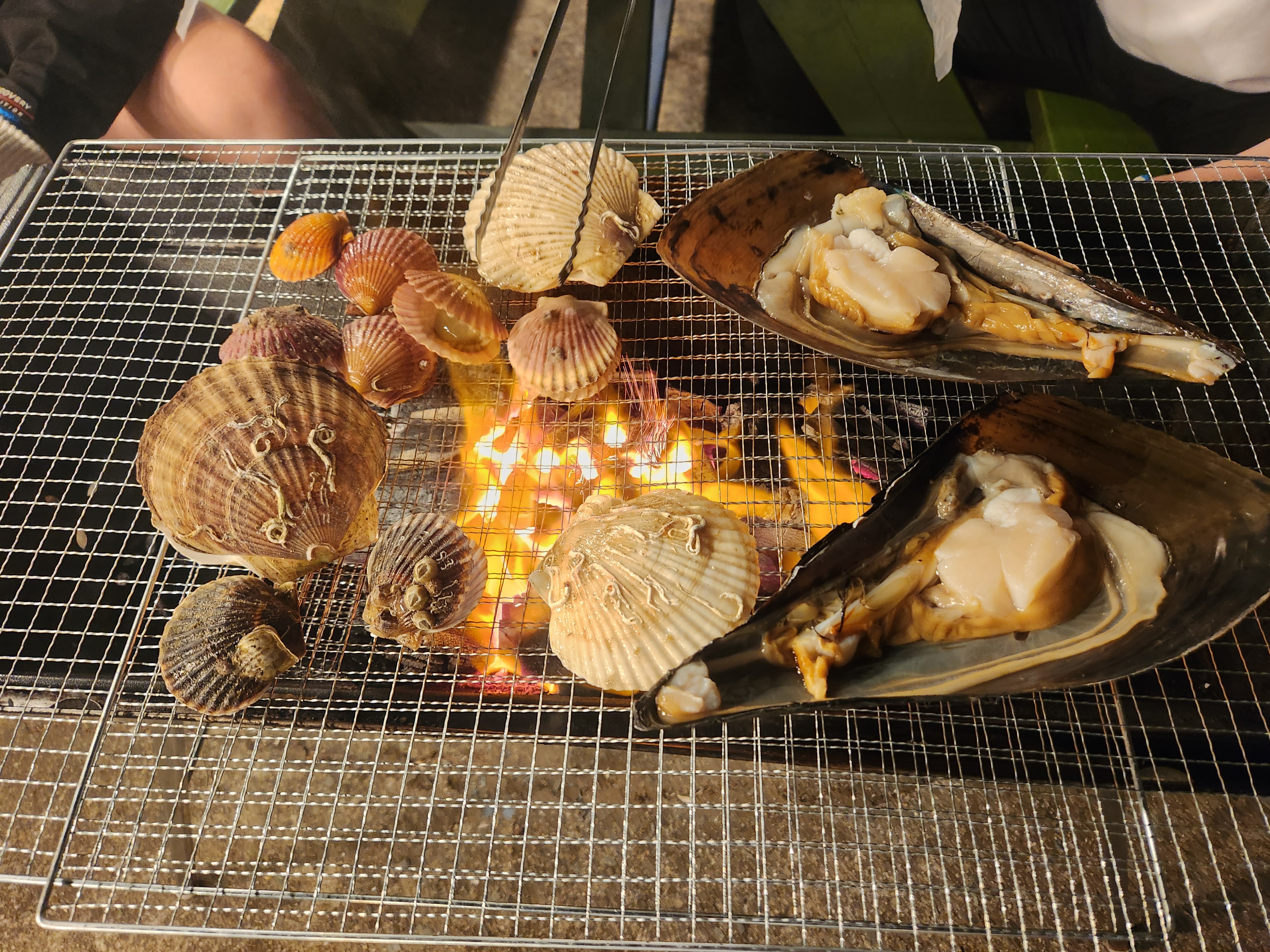 그래서 숙소도착하자마자 바로 조개구이!! 회!!!
